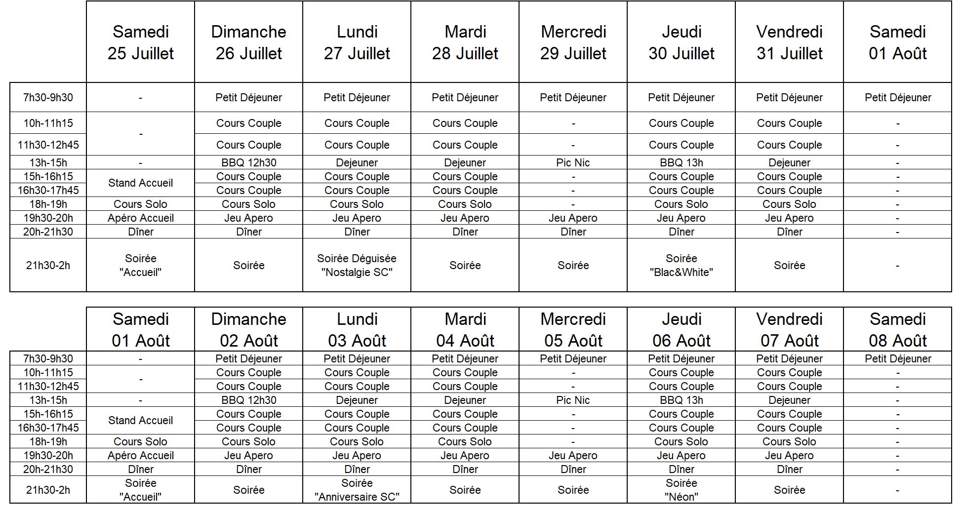 - Lundi 27 Juillet : Thème « Nostalgie SC » => Sortez votre déguisement préféré en rapport avec tous les thèmes des éditions précédentes 😉